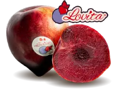 Lovita® est une séduisante prune à chair rouge en forme de cœur. Saveur exceptionnelle, juteuse, sucrée-acidulée, elle saura faire succomber tous les amateurs de fruit. Elle s’impose tous les ans un peu plus comme une des stars de la gamme.