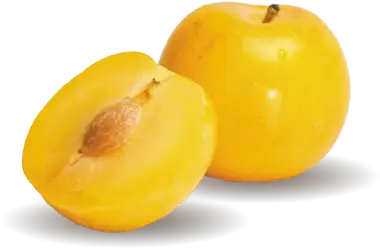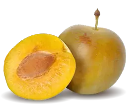 Prune jaune précoce et de bon calibre, à chair juteuse. Elle est récoltée début juillet.