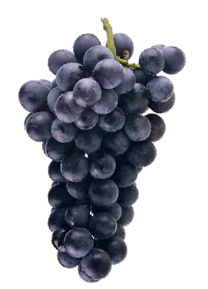 Raisin aux grains noirs et brillants. Sa chair est juteuse et légèrement acidulée.